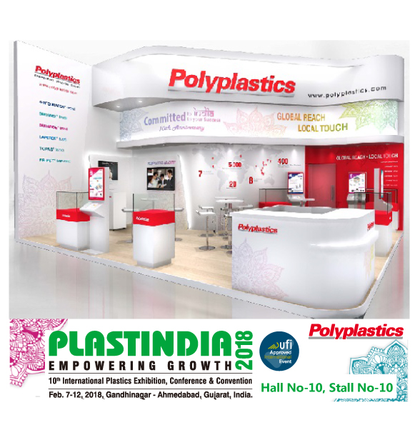 Polyplastics Marketing (India) Pvt. Ltd.,将参展于2018年2月在印度西北部古吉拉特邦(Gujarat)首府甘地讷格尔(Gandhinagar)举行的PLASTINDIA 2018(第10届印度国际塑料展)。PLASTINDIA为印度规模最大的塑料展之一,每三年举办一次。宝理塑料每届都参展。