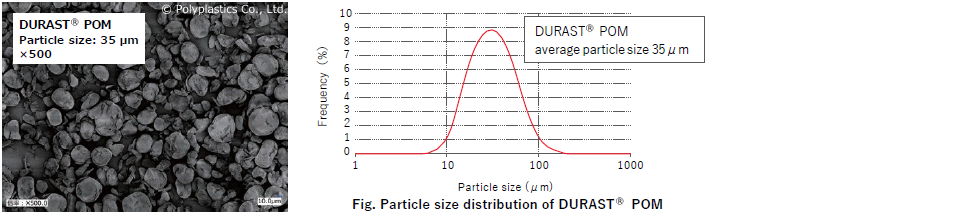 宝理塑料主要提供面向注塑成型、挤出成型的颗粒状的工程塑料。在不断扩大产品阵容的过程中,有客户提出“对于无法采用粒料的制造方法,也希望能使用工程塑料为产品附加新功能”的希望,为了满足该需求,我们针对解决方法展开了研究。本公司认为粉末这种形状将成为一种解决方案,特此开发出“DURASTⓇ Powder(工程塑料精细粉末)”,该产品拥有独具特色的形状,粒径小且分布窄。我们将把该产品作为一种有可能发现新性能的材料进行推介。